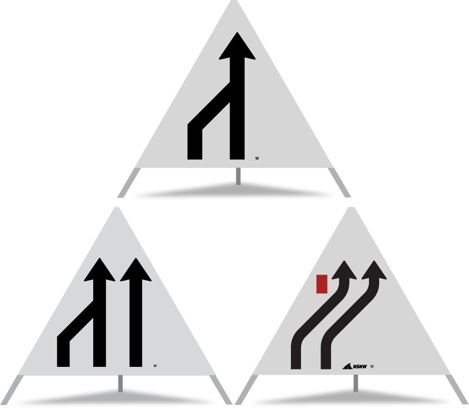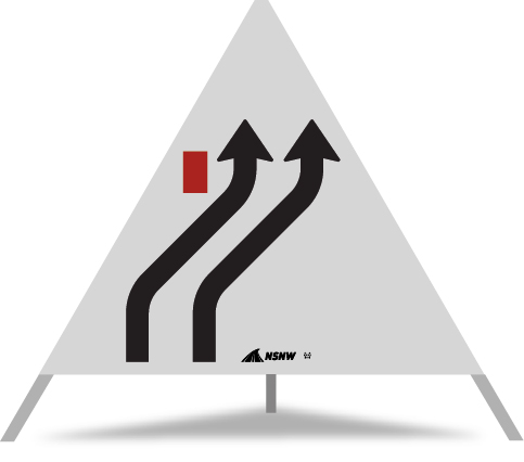 Anz.Fahrstreifen 2-spurig rechts übergehend mit Insel rot links (Construction NSNW)