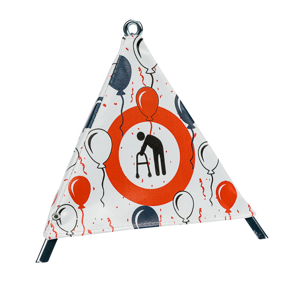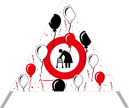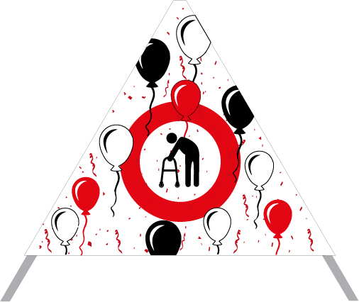 Frau mit Gehhilfe im roten Kreis (Ballone) -