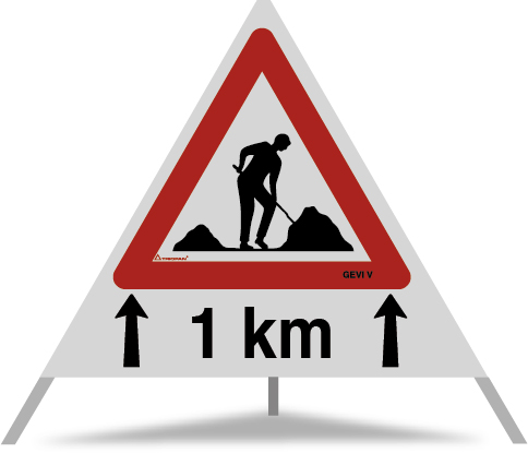 Baustelle 1.14 2 Pfeile (5.03) 1 km R2.90.I (GEVI)